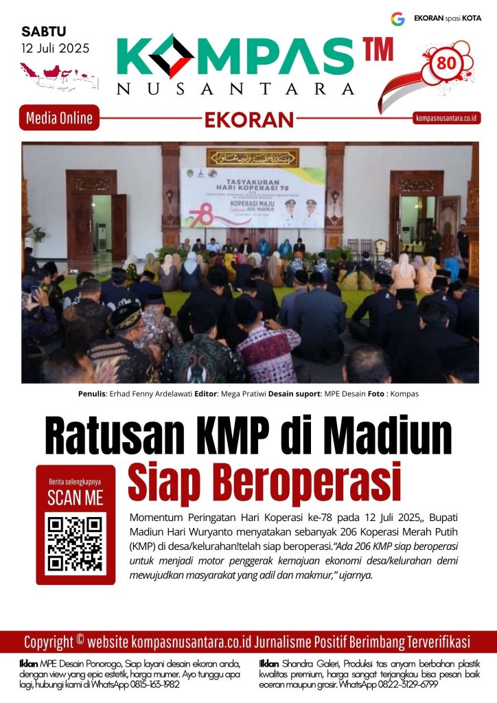 KOMPAS™, MADIUN – Momentum Peringatan Hari Koperasi ke-78 pada 12 Juli 2025,, Bupati Madiun Hari Wuryanto menyatakan sebanyak 206 Koperasi Merah Putih (KMP) di desa/kelurahan!telah siap beroperasi.