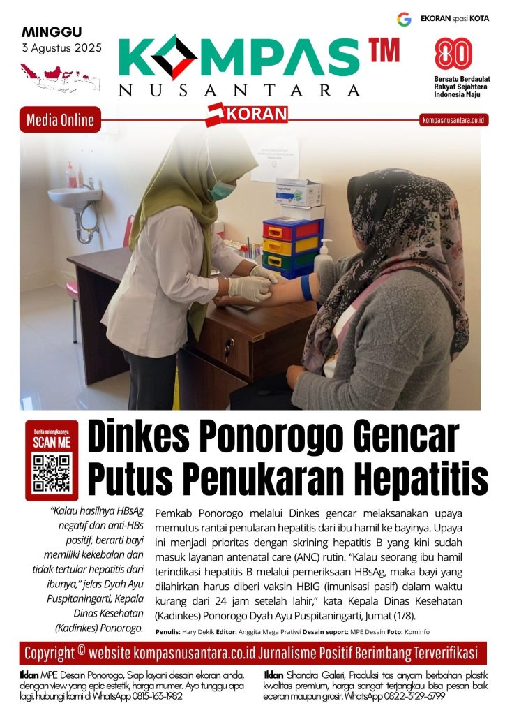 KOMPAS™, PONOROGO – Pemerintah Kabupaten (Pemkab) Ponorogo melalui Dinas Kesehatan (Dinkes) gencar melaksanakan upaya memutus rantai penularan hepatitis dari ibu hamil ke bayinya. Upaya ini menjadi prioritas dengan skrining hepatitis B yang kini sudah masuk layanan antenatal care (ANC) rutin.