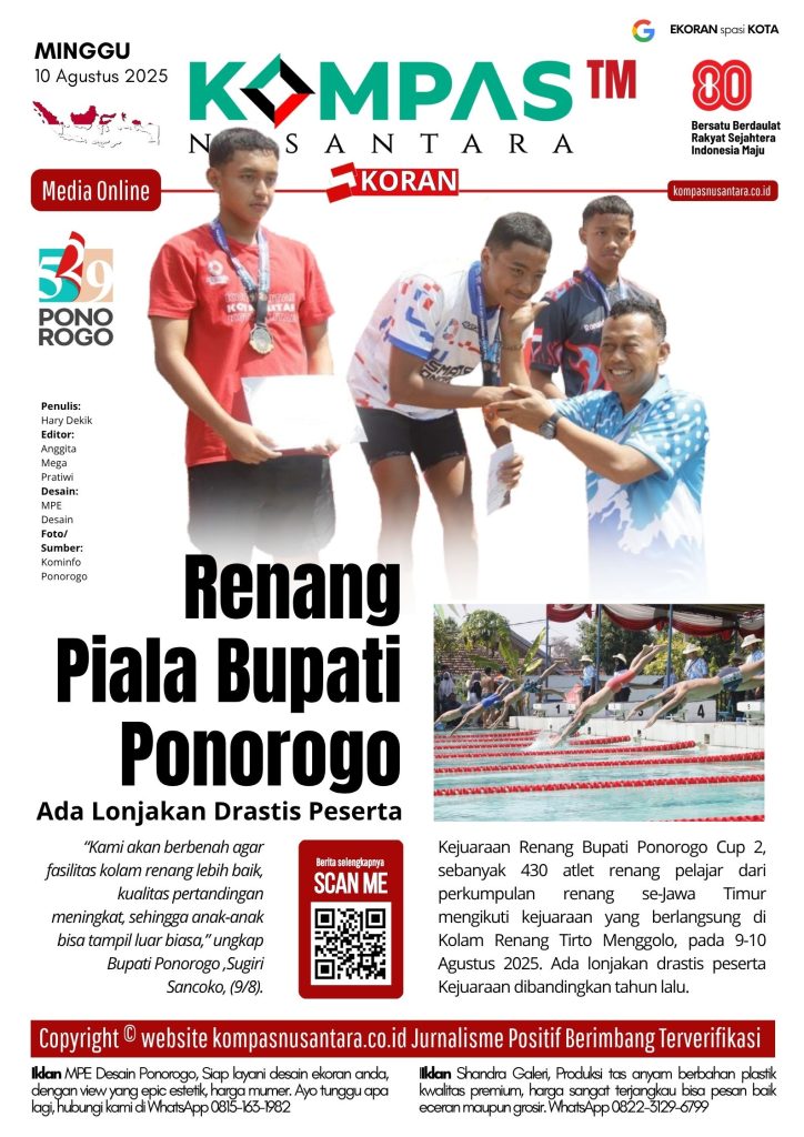 KOMPAS™, PONOROGO – Kejuaraan Renang Bupati Ponorogo Cup 2, sebanyak 430 atlet renang pelajar dari perkumpulan renang se-Jawa Timur mengikuti kejuaraan yang berlangsung di Kolam Renang Tirto Menggolo, pada 9-10 Agustus 2025.