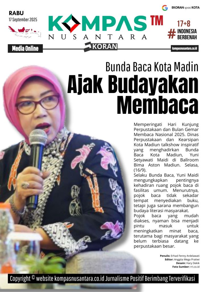 KOMPAS™, MADIUN – Memperingati Hari Kunjung Perpustakaan dan Bulan Gemar Membaca Nasional 2025. Dinas Perpustakaan dan Kearsipan Kota Madiun talkshow inspiratif yang menghadirkan Bunda Baca Kota Madiun, Yuni Setyawati Maidi di Ballroom Bima Aston Madiun. Selasa, (16/9).