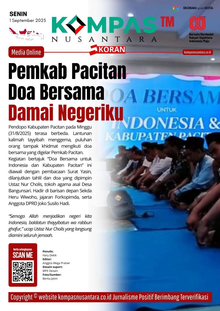 KOMPAS™, PACITAN – Pendopo Kabupaten Pacitan pada Minggu (31/8/2025) terasa berbeda. Lantunan kalimah tayyibah menggema, puluhan orang tampak khidmat mengikuti doa bersama yang digelar Pemkab Pacitan.