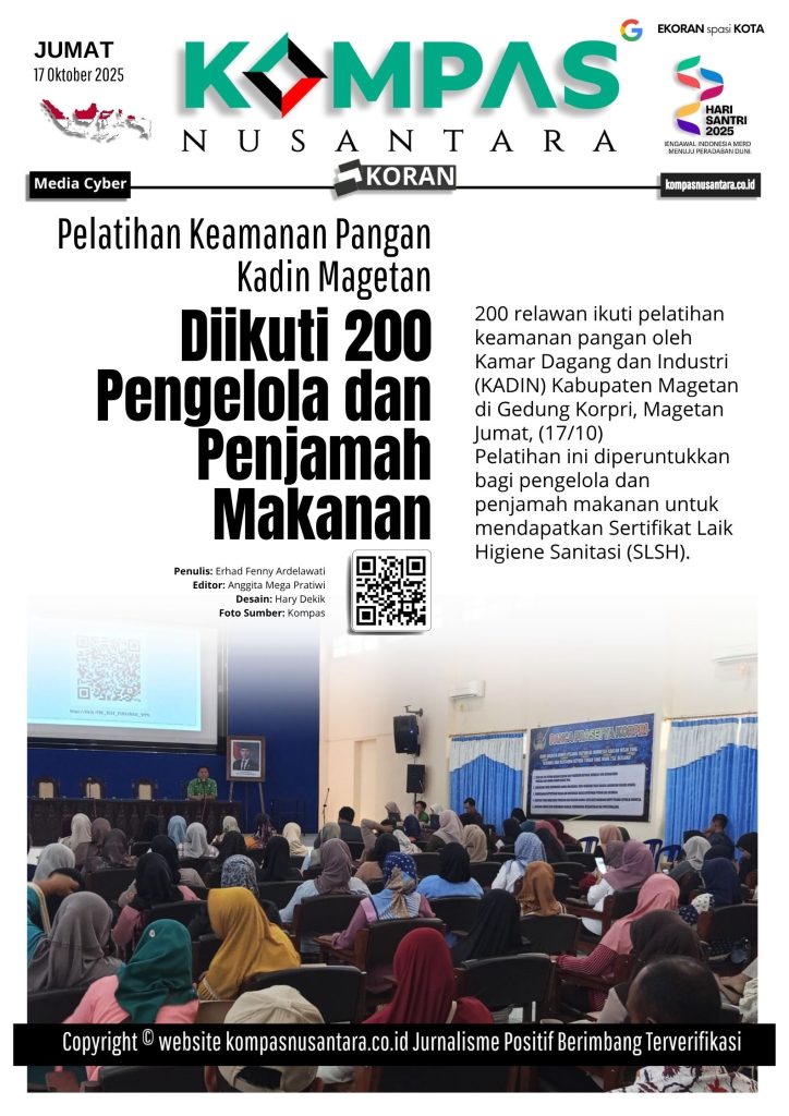 Azis suhermanto, Ketua Kadin Magetan mengatakan bahwa pelatihan keamanan pangan ini diperuntukkan bagi pengelola dan penjamah makanan, hal ini merupakan salah satu langkah untuk meningkatkan pengetahuan dan keterampilan dalam praktik penanganan makanan yang aman dan higienis agar mencegah penyakit bawaan makanan dan memastikan keamanan pangan bagi konsumen.