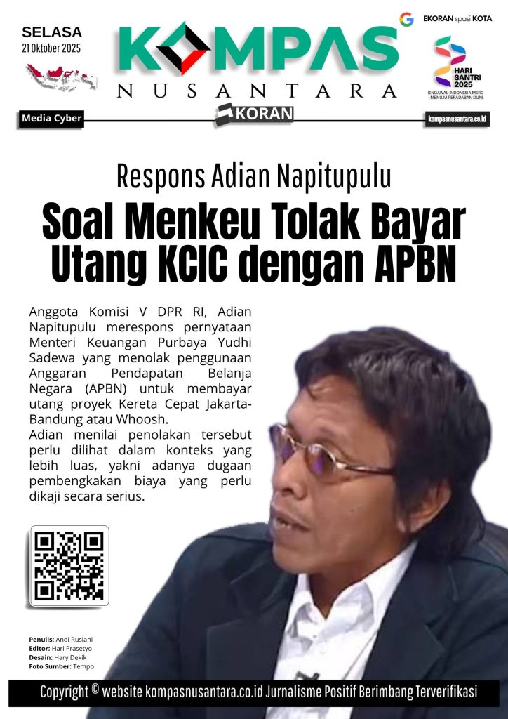 KOMPAS™, INDONESIA – Anggota Komisi V DPR RI, Adian Napitupulu merespons pernyataan Menteri Keuangan Purbaya Yudhi Sadewa yang menolak penggunaan Anggaran Pendapatan Belanja Negara (APBN) untuk membayar utang proyek Kereta Cepat Jakarta-Bandung atau Whoosh.