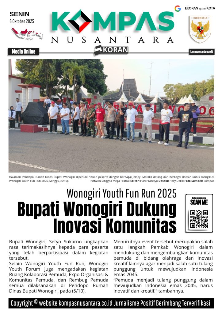 KOMPAS™, WONOGIRI – Halaman Pendopo Rumah Dinas Bupati Wonogiri dipenuhi ribuan peserta dengan berbagai Jersey. Meraka datang dari berbagai daerah untuk mengikuti Wonogiri Youth Fun Run 2025, Minggu, (5/10).