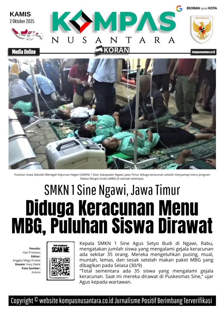 Kepala SMKN 1 Sine Agus Setyo Budi di Ngawi, Rabu, mengatakan jumlah siswa yang mengalami gejala keracunan ada sekitar 35 orang. Mereka mengeluhkan pusing, mual, muntah, lemas, dan sesak setelah makan paket MBG yang dibagikan pada Selasa (30/9)