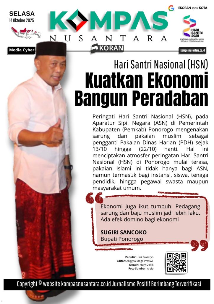 Bupati Sugiri Sancoko, mengeluar ketentuan tersebut tertuang dalam Surat Edaran (SE) Bupati Ponorogo Nomor 100.3.4.2/KH 11/405.01.2/2025 tentang pakaian khusus menyambut HSN 2025.