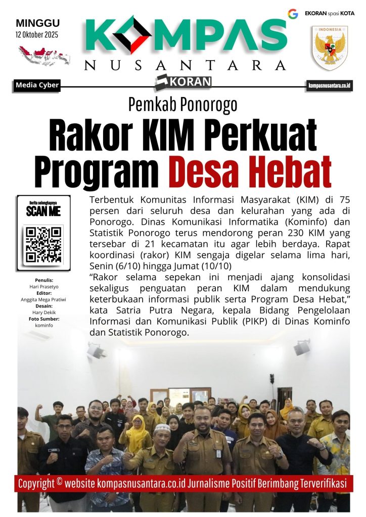 “Rakor selama sepekan ini menjadi ajang konsolidasi sekaligus penguatan peran KIM dalam mendukung keterbukaan informasi publik serta Program Desa Hebat,” kata Satria Putra Negara, kepala Bidang Pengelolaan Informasi dan Komunikasi Publik (PIKP) di Dinas Kominfo dan Statistik Ponorogo.