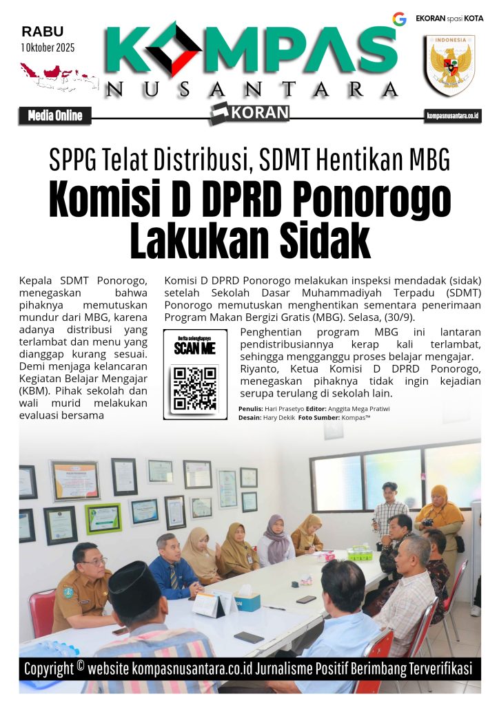KOMPAS™, PONOROGO – Komisi D DPRD Ponorogo melakukan inspeksi mendadak (sidak) setelah Sekolah Dasar Muhammadiyah Terpadu (SDMT) Ponorogo memutuskan menghentikan sementara penerimaan Program Makan Bergizi Gratis (MBG). Selasa, (30/9).