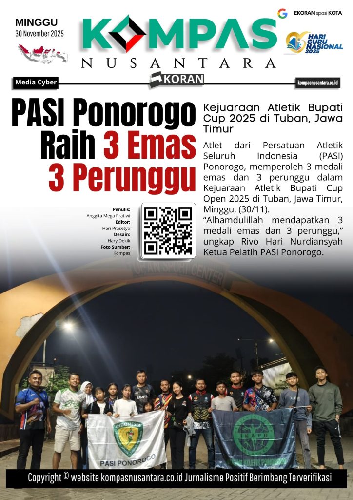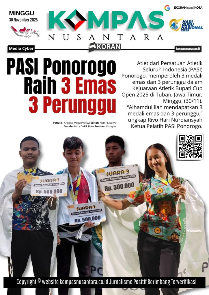 KOMPAS™, PONOROGO – Atlet dari Persatuan Atletik Seluruh Indonesia (PASI) Ponorogo, memperoleh 3 medali emas dan 3 perunggu dalam Kejuaraan Atletik Bupati Cup Open 2025 di Tuban, Jawa Timur, Minggu, (30/11).