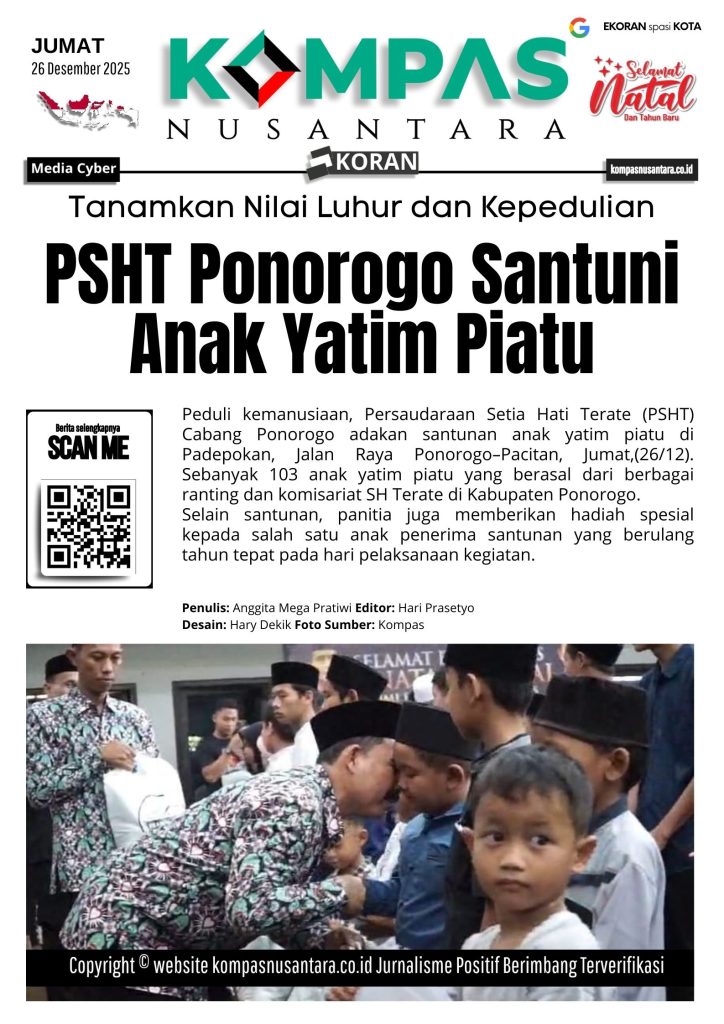 KOMPAS™, PONOROGO – Peduli kemanusiaan, Persaudaraan Setia Hati Terate (PSHT) Cabang Ponorogo adakan santunan anak yatim piatu di Padepokan, Jalan Raya Ponorogo–Pacitan, Jumat,(26/12).