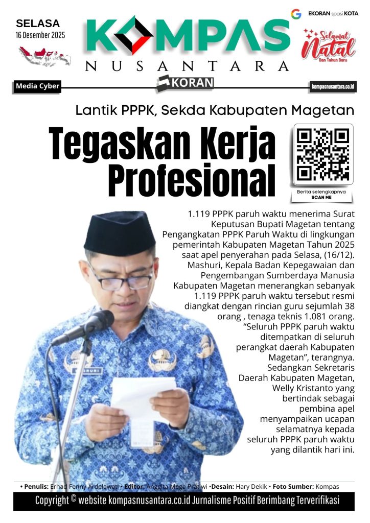 KOMPAS™, MAGETAN – 1.119 PPPK paruh waktu menerima Surat Keputusan Bupati Magetan tentang Pengangkatan PPPK Paruh Waktu di lingkungan pemerintah Kabupaten Magetan Tahun 2025 saat apel penyerahan pada Selasa, (16/12).