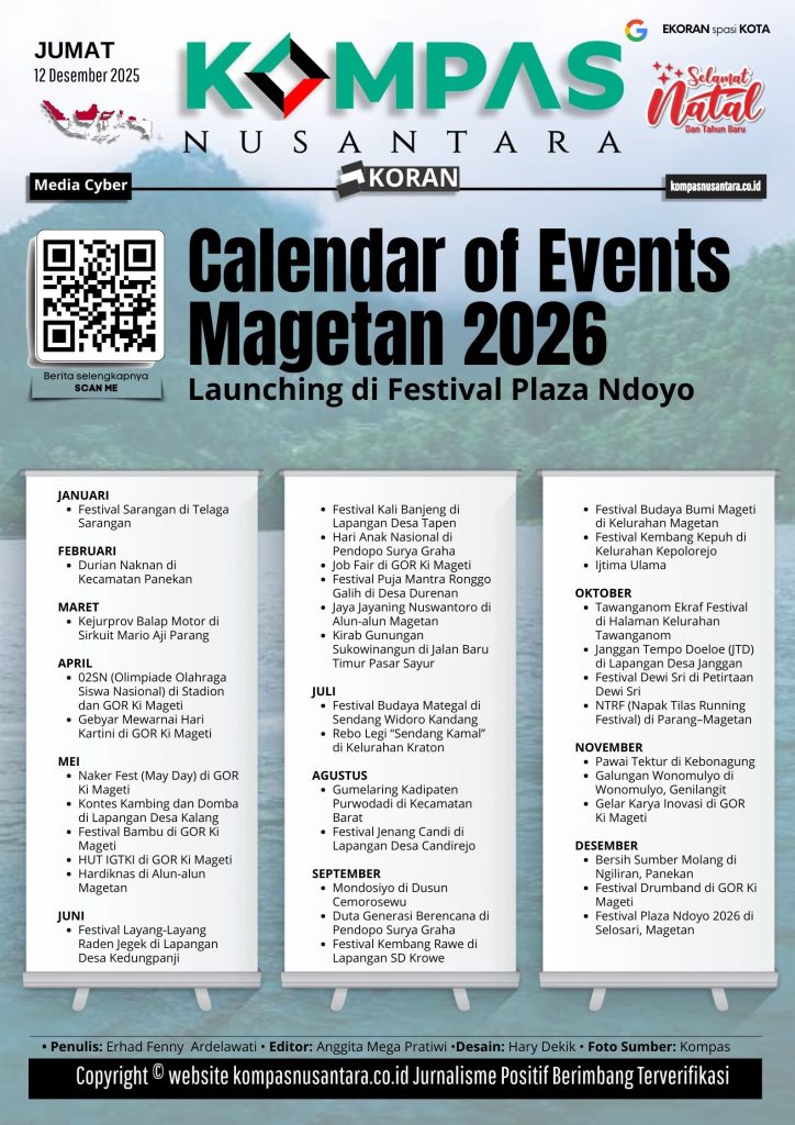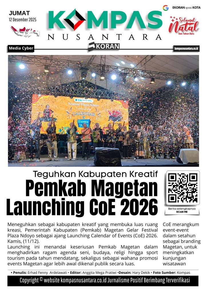 KOMPAS™, MAGETAN – Meneguhkan sebagai kabupaten kreatif yang membuka luas ruang kreasi, Pemerintah Kabupaten (Pemkab) Magetan Gelar Festival Plaza Ndoyo sebagai ajang Launching Calendar of Events (CoE) 2026. Kamis, (11/12).