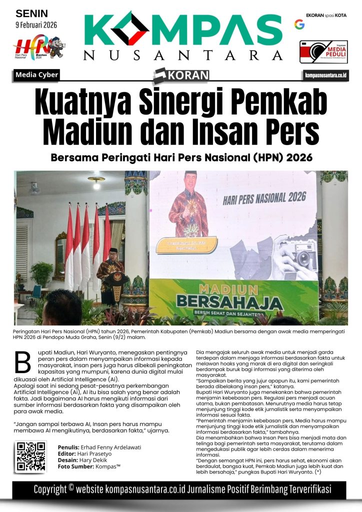 KOMPAS™, MADIUN – Sinergi yang kuat antara Pemerintah Kabupaten (Pemkab) dan Insan Pers Madiun, melalui Dinas Komunikasi dan Informatika menggelar peringatan Hari Pers Nasional (HPN) 2026 di Pendopo Muda Graha, Senin (9/2) malam.