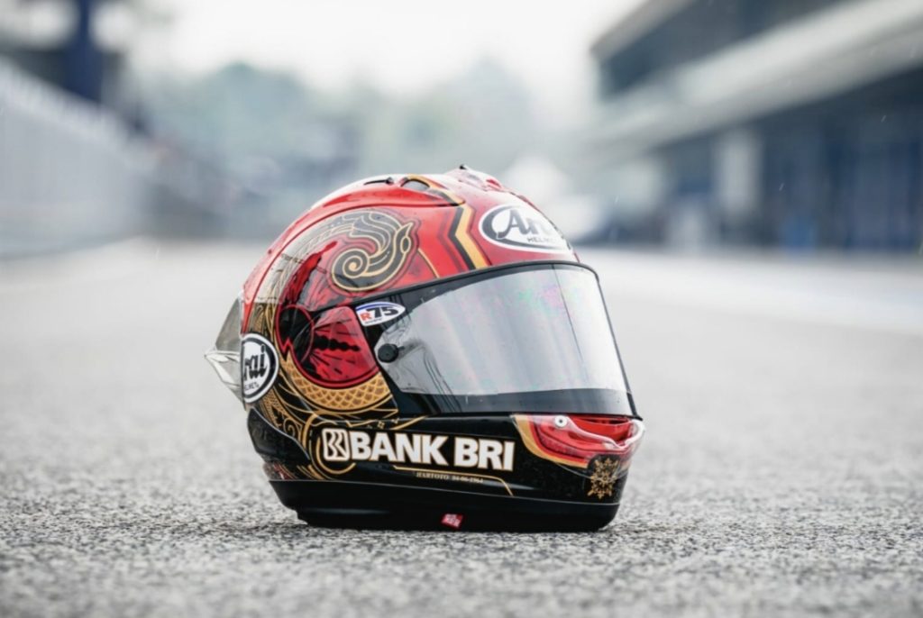 “Pada musim balap ini, Mario berkomitmen mengenalkan budaya Indonesia ke kancah internasional. Helm ini bukan sekadar alat pelindung, melainkan aktualisasi wastra dan seni budaya tanah kelahiran Mario,” ungkapnya.