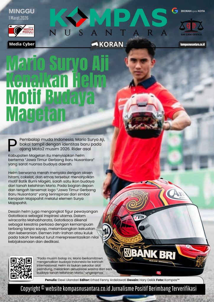 KOMPAS™, MAGETAN – Pembalap muda Indonesia, Mario Suryo Aji, bakal tampil dengan identitas baru pada ajang Moto2 musim 2026. Rider asal Kabupaten Magetan itu menyiapkan helm bertema “Jawa Timur Gerbang Baru Nusantara” yang sarat nuansa budaya daerah.