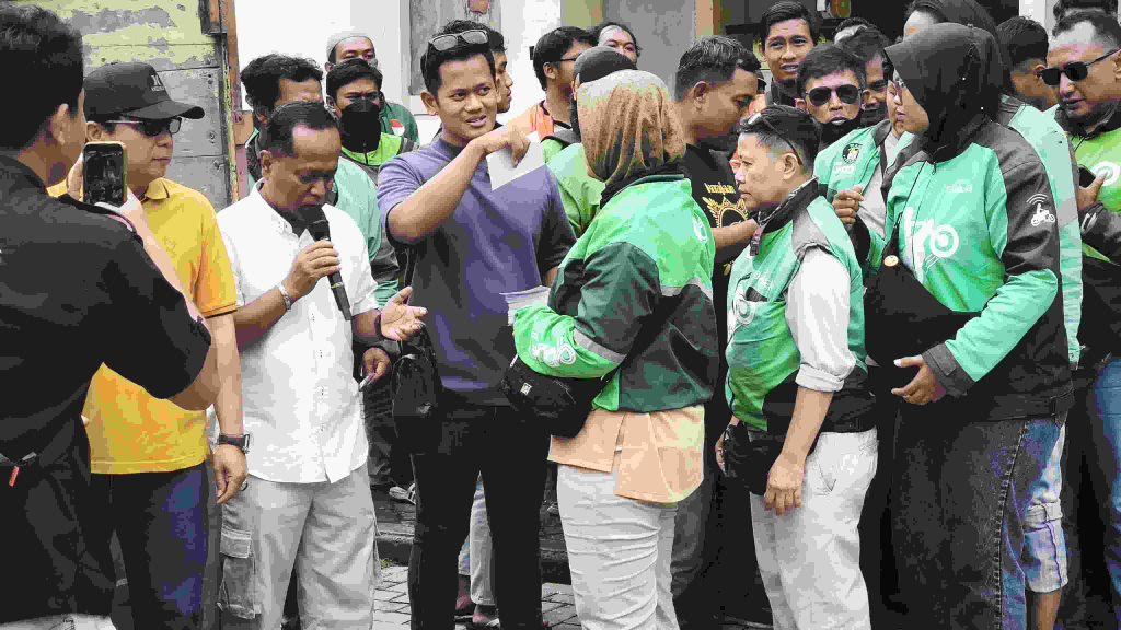 Dia menyampaikan hanya bisa memberikan sedikit bantuan, semoga bermanfaat bagi bapak ibu driver ojol serta bapak tukang becak.