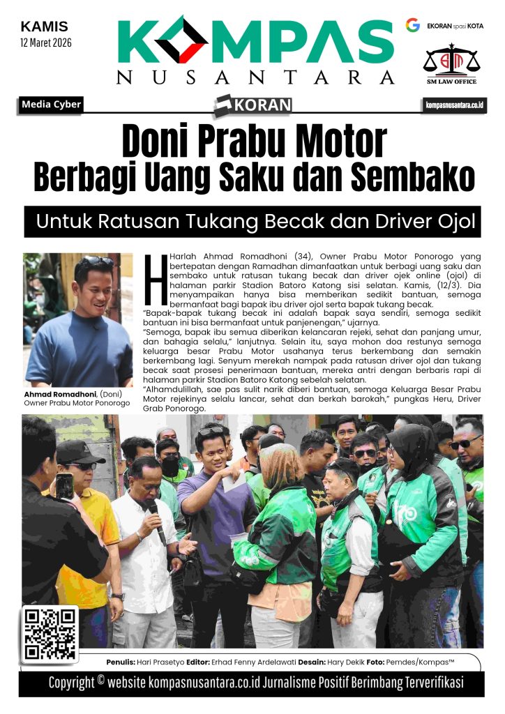 KOMPAS™, PONOROGO – Harlah Ahmad Romadhoni (34), Owner Prabu Motor Ponorogo yang bertepatan dengan Ramadhan dimanfaatkan untuk berbagi uang saku dan sembako untuk ratusan tukang becak dan driver ojek online (ojol) di halaman parkir Stadion Batoro Katong sisi selatan. Kamis, (12/3).