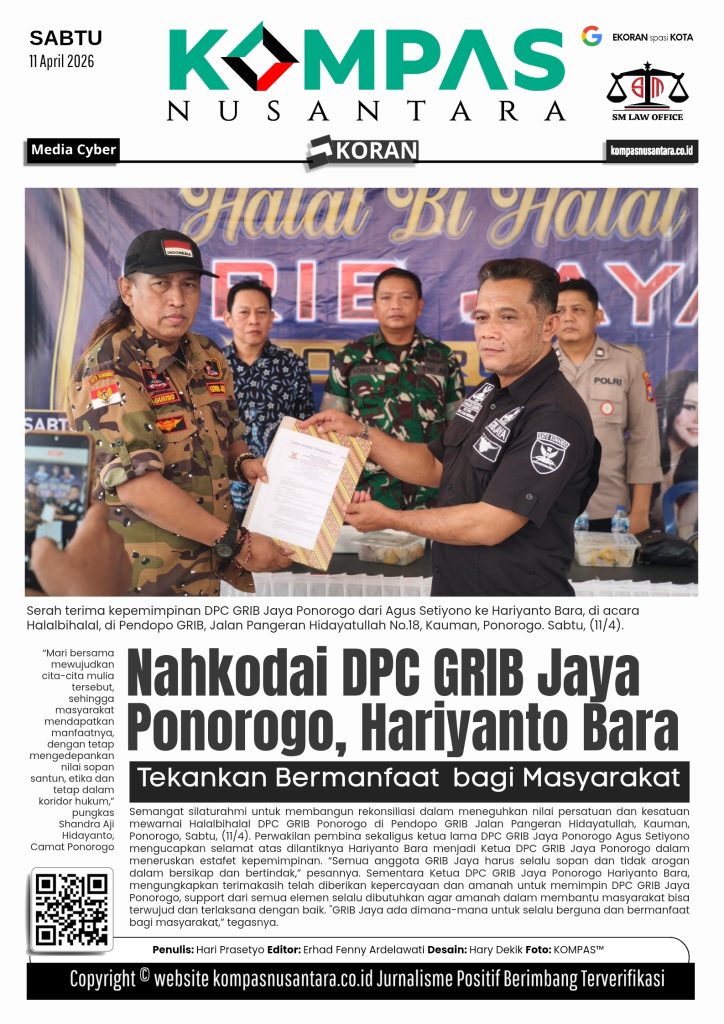KOMPAS™, PONOROGO – Semangat silaturahmi untuk membangun rekonsiliasi dalam meneguhkan nilai persatuan dan kesatuan mewarnai Halalbihalal DPC GRIB Ponorogo di Pendopo GRIB Jalan Pangeran Hidayatullah, Kauman, Ponorogo, Sabtu, (11/4).