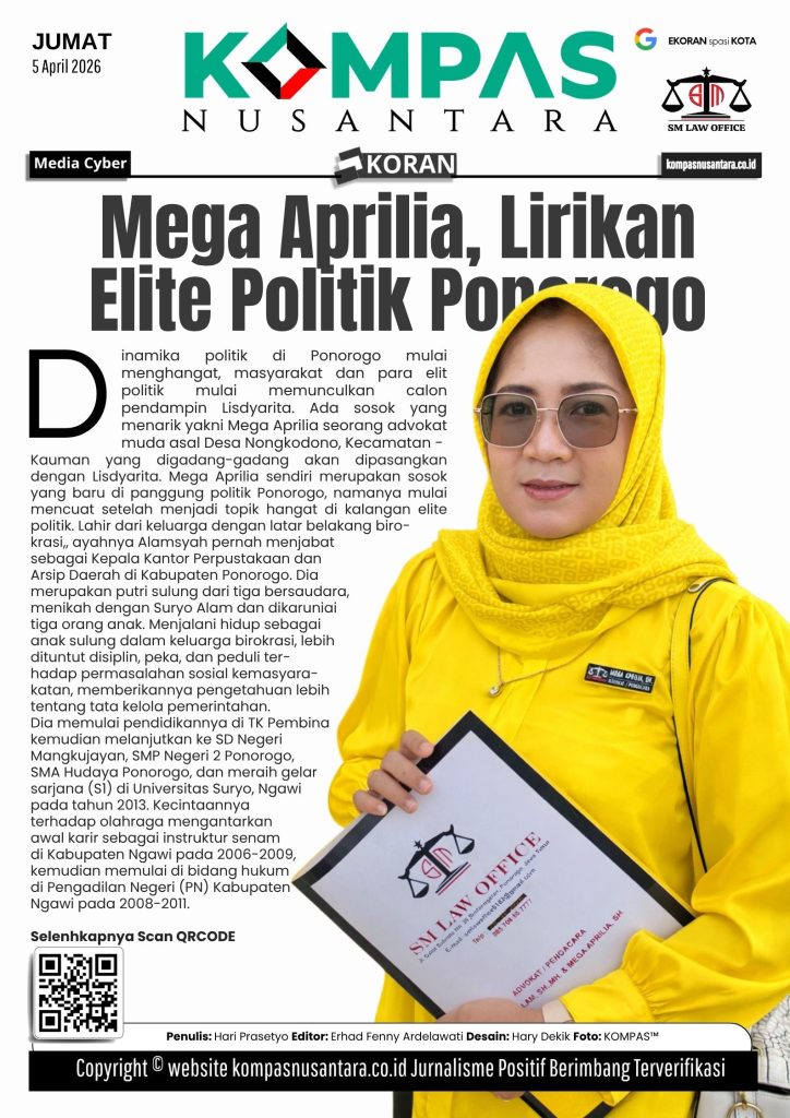 Pengalamamnya di dunia peradilan melengkapi kemampuannya tentang tata kelola pemerintahan dan menjadikannya figur yang dinilai mumpuni dalam menghadapi segala permasalahan masyarakat Ponorogo. Hal itulah, akhirnya mengantarkan nama Mega Aprilia masuk di bursa Calon Wakil Bupati mendampingi Lisdyarita dan dinilai layak mendapat simpati masyarakat maupun elite politik Kabupaten Ponorogo. (*)